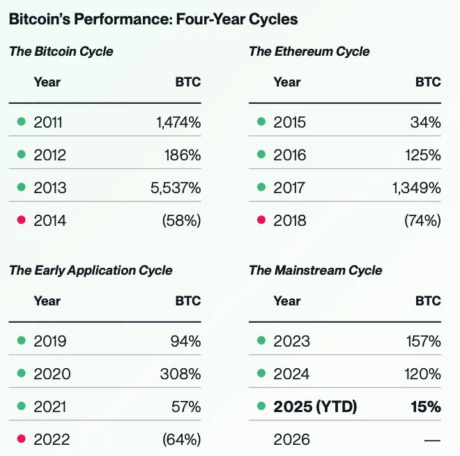 - This cycle may unfold differently. With institutional foundations deeper and ETF distribution broader, we may avoid the dramatic blow-off tops of prior cycles, instead favoring smoother ascents and shallower corrections.